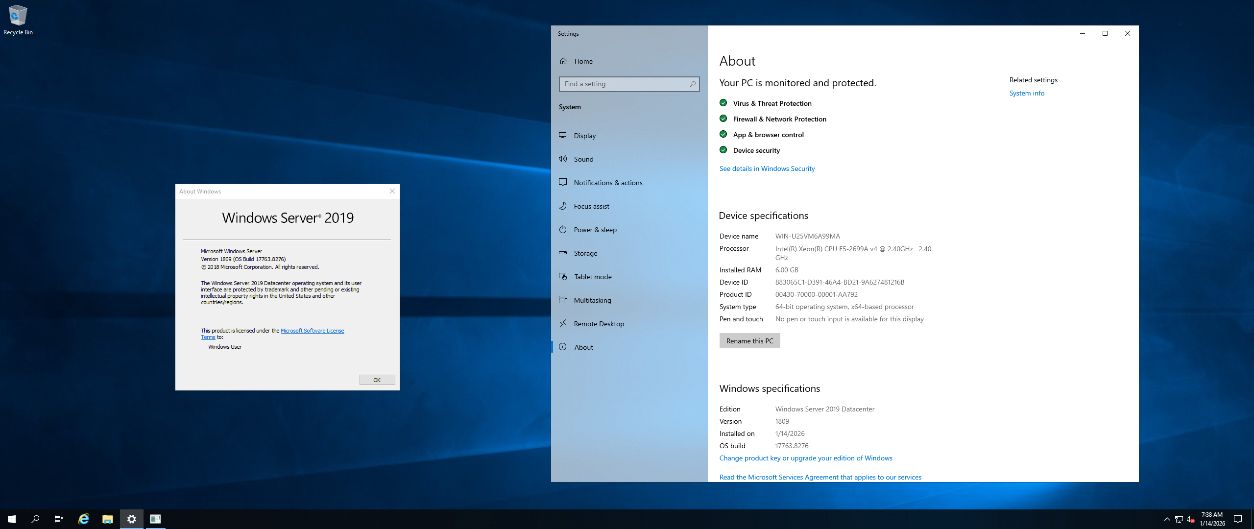 Windows Server 2019 Datacenter (Server with a GUI)