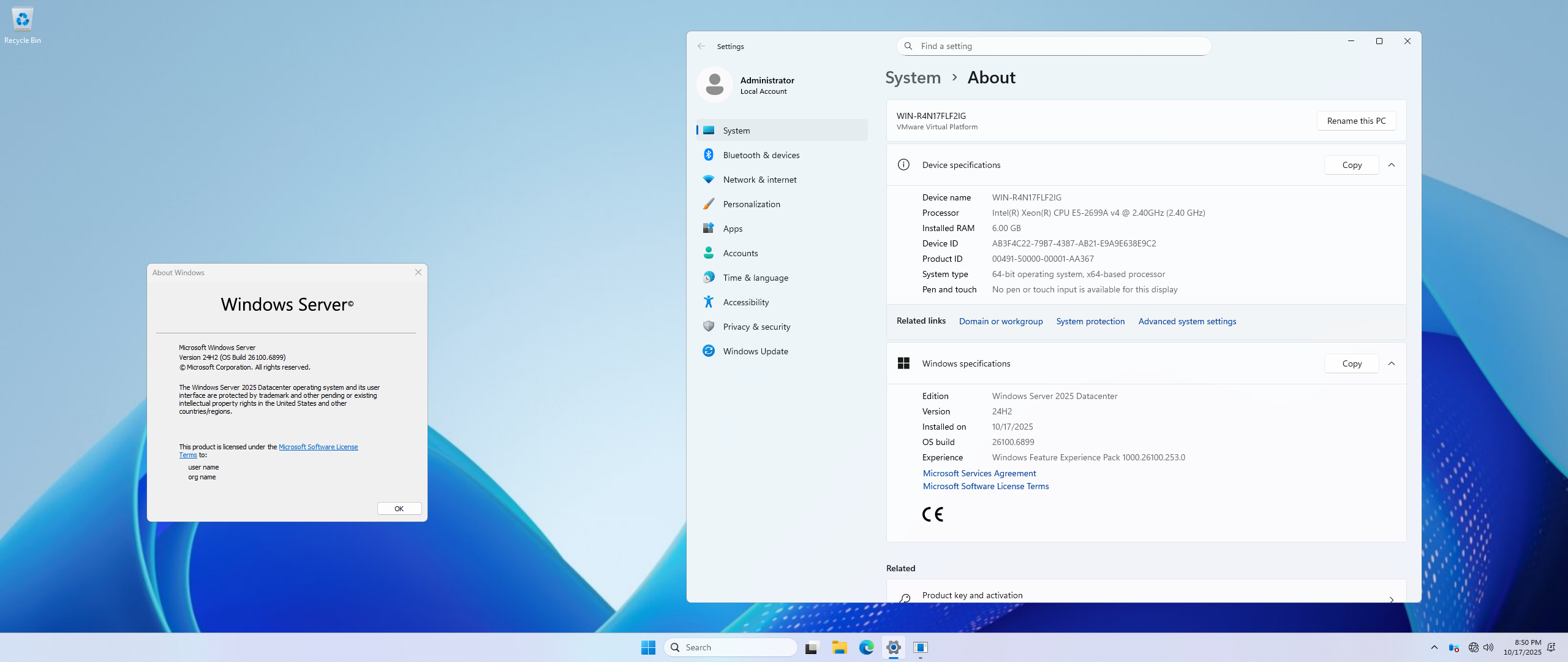 Windows Server 2025 Datacenter (Server with a GUI)